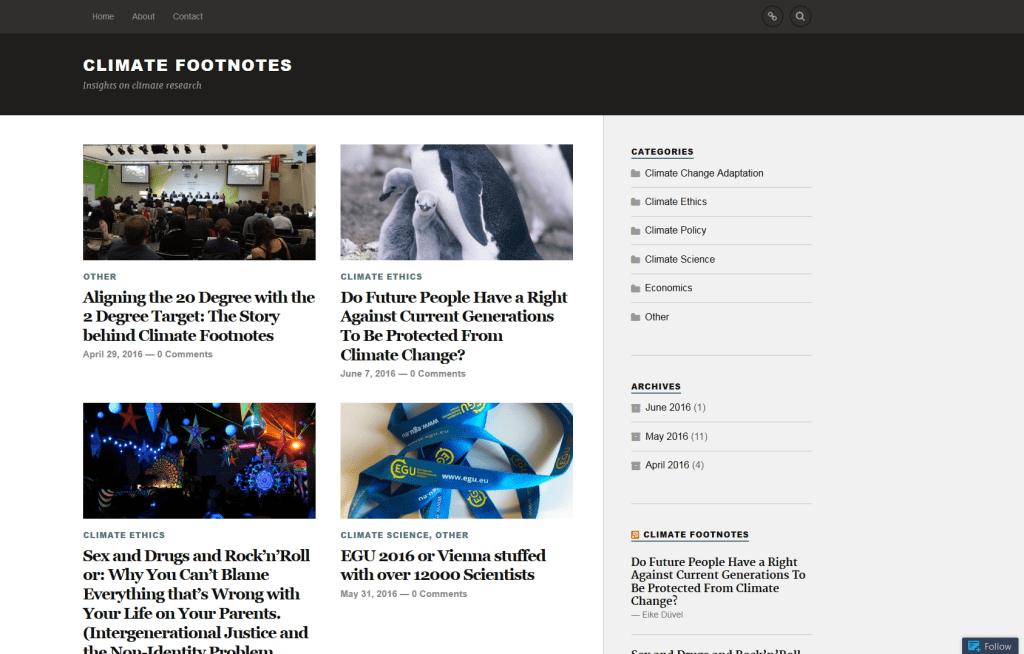 Climate Footnotes was a blog designed and run by students of the Doctoral Programme Climate Change – Uncertainties, Thresholds and Coping Strategies of the University of Graz. The blog aims at being a platform for an interdisciplinary group of climate change researchers to share insights from their research, reflect on current research and developments in regards to climate change, and to provide early stage researchers a platform to engage with a broader public.